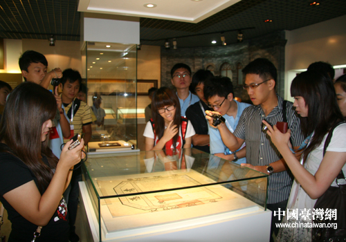 臺(tái)灣學(xué)生認(rèn)真欣賞天津大學(xué)的第一張文憑(圖片來(lái)源:天津市臺(tái)辦)