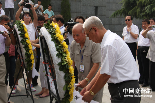 海內(nèi)外黃埔軍校同學會的校友、親屬、專家學者向遇難同胞敬獻花圈。(中國臺灣網(wǎng) 肖燕 攝)
