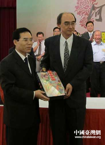 中國(guó)臺(tái)灣網(wǎng)8月28日臺(tái)北消息 8月27日下午,“河北文化寶島行”座談會(huì)暨冀版圖書贈(zèng)書活動(dòng)在臺(tái)北圓山飯店舉行,代表團(tuán)團(tuán)長(zhǎng)、河北省委常委、宣傳部長(zhǎng)聶辰席出席活動(dòng)。