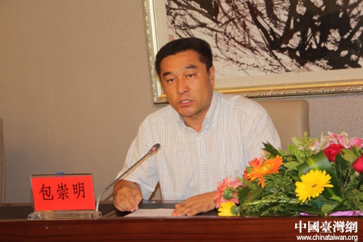 鄂爾多斯市副市長(zhǎng)包崇明向全國(guó)知名網(wǎng)絡(luò)媒體記者介紹鄂爾多斯經(jīng)濟(jì)社會(huì)發(fā)展情況。(中國(guó)臺(tái)灣網(wǎng) 王文英 攝)