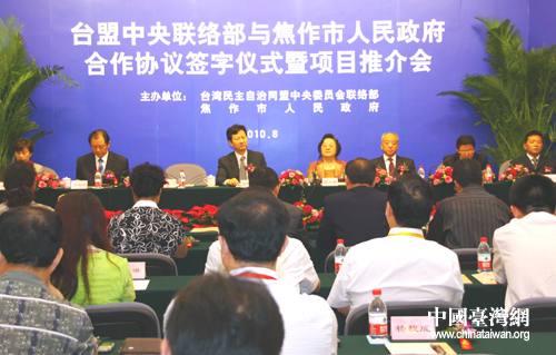 臺(tái)盟中央聯(lián)絡(luò)部與焦作市政府簽訂合作協(xié)議,推進(jìn)豫臺(tái)兩地經(jīng)貿(mào)合作。(中國(guó)臺(tái)灣網(wǎng) 孫金誠(chéng) 攝)