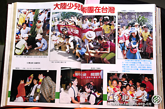 第一屆大陸小天使赴臺時兩岸媒體的相關報道。上圖為臺灣媒體部分報道的剪報,下圖為《臺聲雜志》的圖片報道。(全國臺聯(lián)文宣部提供圖片)