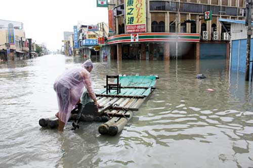 在隘寮溪沿岸的萬丹鄉(xiāng),也因溪水溢流成了澤國,“去年‘莫拉克’淹水也沒這次大!”鄉(xiāng)長郭寶聯(lián)說,這次興化部落全村水深高過一層樓,以往從來沒有過。甘棠村從未淹水,這次也躲不過,警方救出上百名受困民眾。