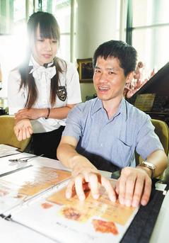 本身是視障的無(wú)障礙科技發(fā)展協(xié)會(huì)秘書(shū)長(zhǎng)楊圣弘說(shuō),到餐廳點(diǎn)菜真的很痛苦,點(diǎn)菜時(shí)經(jīng)常跟服務(wù)生大眼瞪小眼,因?yàn)楦究床灰?jiàn)菜單。過(guò)去視障者多半被動(dòng)接受餐廳建議菜單,只好叫外賣(mài)或自己做菜。楊圣弘說(shuō),如果有點(diǎn)字菜單,對(duì)他們來(lái)說(shuō)實(shí)在是好消息。