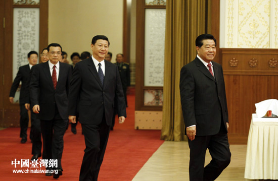 全國政協(xié)辦公廳、中共中央統(tǒng)戰(zhàn)部、國務院僑辦、國務院港澳辦和國務院臺辦29日晚在人民大會堂宴會廳聯(lián)合舉行國慶招待會。中共中央政治局常委、全國政協(xié)主席賈慶林,中共中央政治局常委、國家副主席習近平,中共中央政治局常委、國務院副總理李克強等共同出席。(中國臺灣網(wǎng) 鐘寶華 攝)