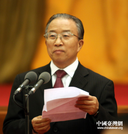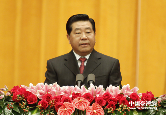 中共中央政治局常委、全國政協(xié)主席賈慶林在招待會上致辭。(中國臺灣網(wǎng) 鐘寶華 攝)