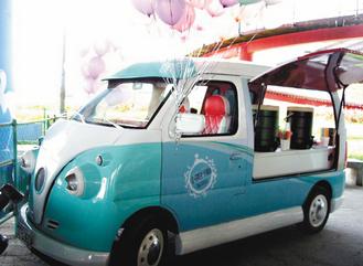 而新北市長(zhǎng)候選人蔡英文陣營(yíng)則請(qǐng)他改裝三組(每組一輛戰(zhàn)車(chē)、一輛宣傳車(chē))“小英號(hào)”,要求走溫馨都會(huì)風(fēng)格,結(jié)合行動(dòng)咖啡車(chē),要請(qǐng)選民喝咖啡、搏感情,屬于“溫馨”改裝法。