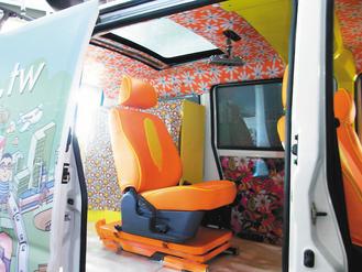 蘇嘉全的“itoro號(hào)”,特別強(qiáng)化喇叭音響功能;另外車(chē)頂開(kāi)天窗,并加裝電動(dòng)升降椅的機(jī)關(guān)。來(lái)源:臺(tái)灣《聯(lián)合報(bào)》