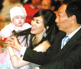 郭臺(tái)銘(右)、曾馨瑩(中)夫婦與女兒妞妞。 資料圖