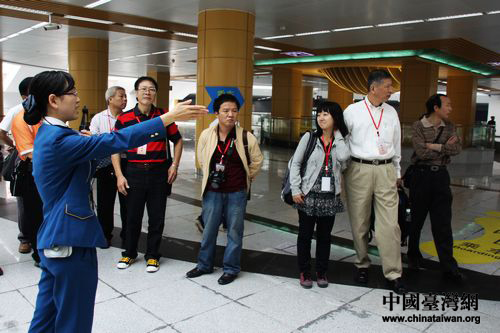 成都地鐵1號(hào)線(xiàn)講解員為臺(tái)灣記者介紹地鐵概況。(中國(guó)臺(tái)灣網(wǎng) 馬迪 攝)