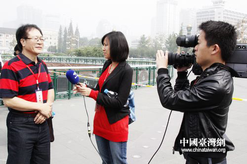 臺灣記者接受四川媒體采訪。(中國臺灣網(wǎng) 馬迪 攝)