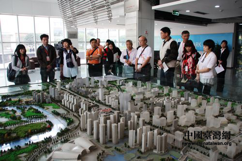 參觀采訪成都高新區(qū)—天府軟件園。圖為聽取軟件園規(guī)劃講解。(中國臺灣網(wǎng) 馬迪 攝)