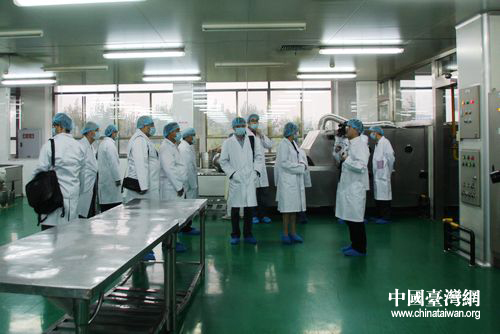兩岸記者參觀臺資企業(yè)元祖食品生產(chǎn)區(qū)。(中國臺灣網(wǎng) 馬迪 攝)