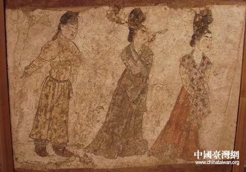 將參展的珍貴文物盛裝仕女(圖片來(lái)源:陜西省臺(tái)辦)