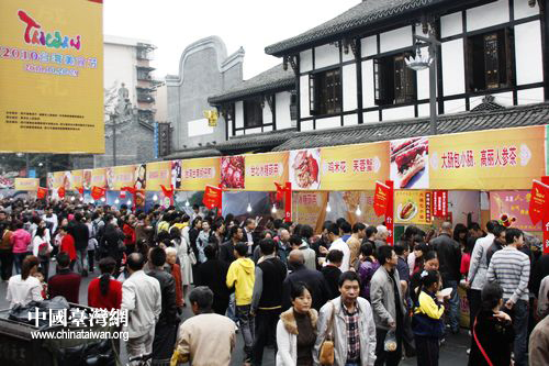 成都市文殊坊老街因為“臺灣美食節(jié)”而人頭攢動。(中國臺灣網(wǎng) 馬迪 攝)