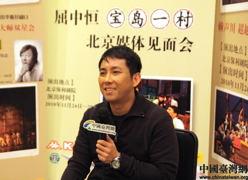 中國(guó)臺(tái)灣網(wǎng)10月27日北京消息 講述臺(tái)灣眷村故事的舞臺(tái)劇《寶島一村》將于11月24—28日在北京再度上演,昨天,該劇主要演員之一、臺(tái)灣知名藝人屈中恒來(lái)京,為該劇提前預(yù)熱。26日晚,本網(wǎng)記者在保利劇院對(duì)屈中恒進(jìn)行了專(zhuān)訪。