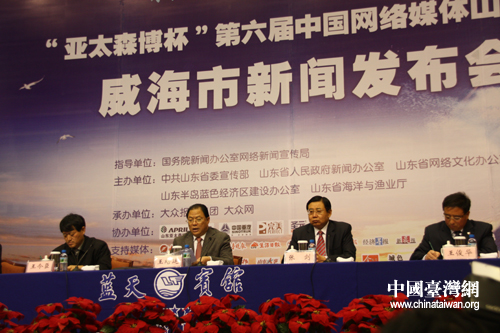 中國(guó)臺(tái)灣網(wǎng)10月28日威海消息 10月27日上午,威海市委、市政府為亞太森博杯“聚焦山東半島藍(lán)色經(jīng)濟(jì)區(qū)”第六屆中國(guó)網(wǎng)絡(luò)媒體山東行采訪活動(dòng)舉行新聞發(fā)布會(huì)。威海市委書(shū)記、市人大常委會(huì)主任王培廷致辭時(shí)表示,威海將重點(diǎn)培養(yǎng)海產(chǎn)品生產(chǎn)加工、船舶修造等六大基地,強(qiáng)力帶動(dòng)藍(lán)色經(jīng)濟(jì)高速發(fā)展。