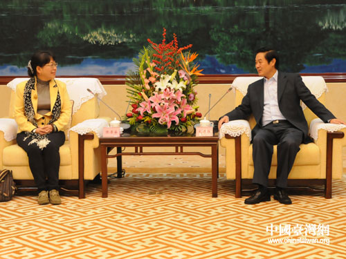 中共四川省委書記、省人大常委會主任劉奇葆會見來訪的臺灣長青村敬老院負(fù)責(zé)人陳芳姿。圖片來源:四川省臺辦