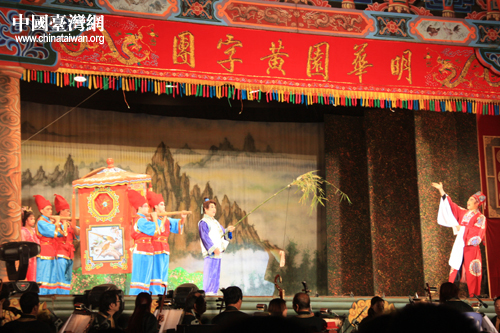 臺灣明華園黃字劇團與漳州市薌劇團同臺獻演大型歌仔戲《周公法斗桃花女》。(中國臺灣網(wǎng) 胡珊珊 攝影)