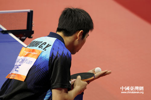 比賽中,莊智淵發(fā)球。(中國臺灣網(wǎng) 鐘寶華 攝)