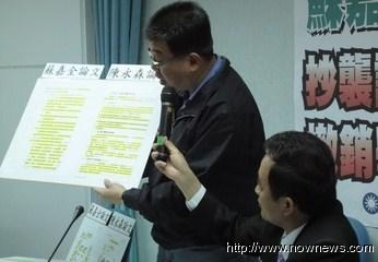 國(guó)民黨籍“立委”邱毅22日上午爆料指民進(jìn)黨臺(tái)中市長(zhǎng)候選人蘇嘉全的碩士論文涉嫌抄襲。(圖片來(lái)源:臺(tái)灣“今日新聞網(wǎng)” 陳思穎攝)