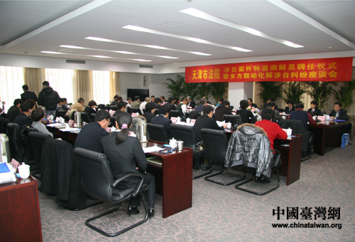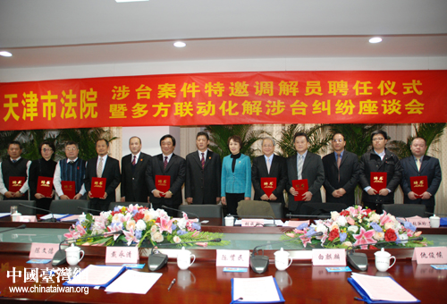 天津市高級人民法院舉行涉臺案件特邀調(diào)解員聘任儀式上,9名臺胞正式受聘上崗(圖片來源:天津市臺辦)