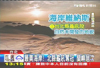 臺北縣萬里鄉(xiāng)的龜吼路段,有多處海岸景點(diǎn),并以地貌景觀和自然特色,拿下最佳維納斯海岸線的第1名。圖片來源:臺灣TVBS電視臺