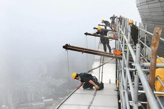焰火設(shè)計師在高空勘察作業(yè)。圖片來源:臺灣《聯(lián)合報》