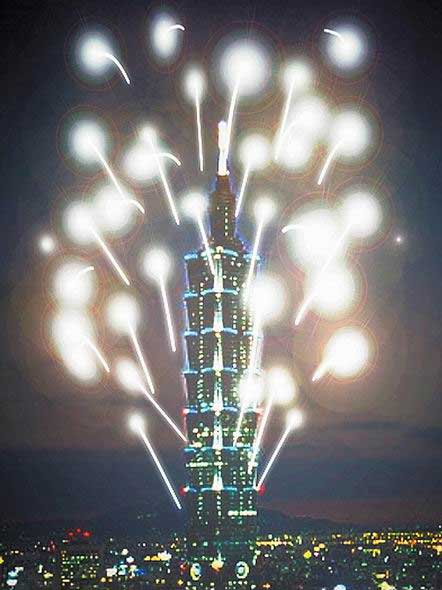 臺北101煙火秀一向是臺灣跨年煙火秀的重頭戲,此次則耗資6000萬元(新臺幣,下同),由知名爆破大師蔡國強設(shè)計更多樣化煙火,逾3萬發(fā)煙火構(gòu)成15個創(chuàng)意煙火節(jié)目,長達(dá)288秒;同時,101大樓將建成360度發(fā)射平臺,跨年倒數(shù)后,101大樓將和周遭28棟建物同時燃放煙火上演“百秒雷鳴”,被煙火包圍燃放的大樓,將化身成紅燈籠、銀瀑、綠竹、花卉、巨龍等。