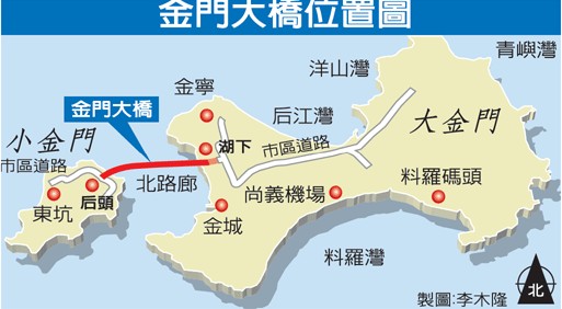 報(bào)道稱,興建金門大橋是馬英九到金門視察時(shí)的承諾,臺(tái)當(dāng)局“行政院經(jīng)建會(huì)”今年2月同意興建計(jì)劃,原本建設(shè)經(jīng)費(fèi)預(yù)估50多億元,經(jīng)過(guò)地質(zhì)鉆探提高為75億元,預(yù)算目前還在臺(tái)“行政院經(jīng)建會(huì)”審議中。