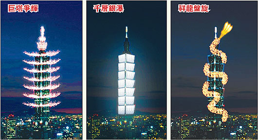 臺(tái)北101大樓2011跨年煙火慶典效果圖。圖片來(lái)源:臺(tái)灣《聯(lián)合報(bào)》