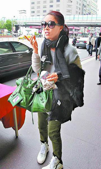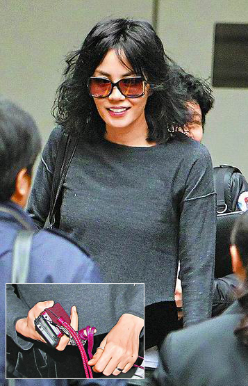王菲戴大墨鏡,笑著離開飯店準(zhǔn)備彩排。她是“微博控”,出門帶著2臺(tái)手機(jī)。 來源:臺(tái)灣媒體