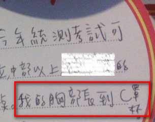 中國臺灣網(wǎng)2月9日消息 據(jù)臺灣“今日新聞網(wǎng)”報道,臺灣一名正妹網(wǎng)友nanaling過年期間到關(guān)帝廟拜拜時,赫然發(fā)現(xiàn)在文昌帝君(民間和道教尊奉的掌管士人功名祿位之神。文昌本星名,亦稱文曲星,古時認為是主持文運功名的星宿)面前出現(xiàn)一張讓人捧腹的許愿卡。卡片除了寫上希望考試能夠順利的許愿文字,后面竟然還寫道愿“我的胸部長到C罩杯”,讓人不禁哈哈大笑。