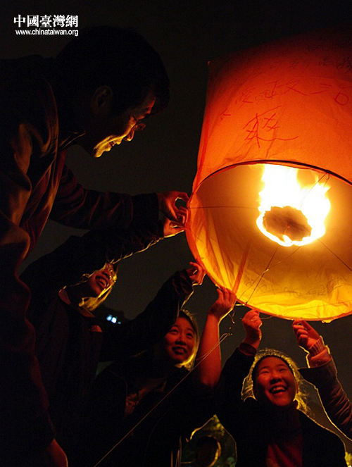中國臺(tái)灣網(wǎng)2月16日臺(tái)北消息 臨近正月十五,全臺(tái)鬧元宵,到平溪放天燈許心愿則成為臺(tái)灣民眾在這一天最喜愛的傳統(tǒng)活動(dòng)之一。天燈相傳為諸葛亮發(fā)明,亦稱為孔明燈,古時(shí)被當(dāng)作信號(hào)燈,近代已演變?yōu)槠桨布榈南笳。人們借著緩緩上升的天燈,期望自己心愿能上達(dá)天庭,無論祈求的是健康、學(xué)業(yè)、愛情,還是事業(yè)。