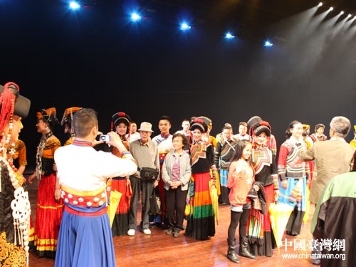 在彰化縣演出結(jié)束后,觀眾踴躍與演員合影留念。圖片來源:四川省臺辦