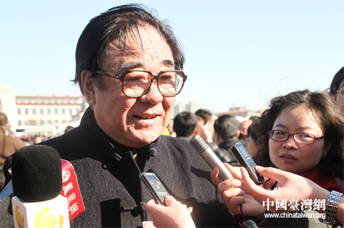 3月3日,全國政協(xié)十一屆四次會議在北京人民大會堂開幕。圖為全國政協(xié)委員金鐵霖接受媒體采訪。(中國臺灣網(wǎng) 陳佳慧 攝)