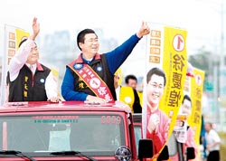 蕭萬長(右)為國民黨籍“立委”參選人陳淑慧站臺(tái)。圖片來源:臺(tái)灣《中國時(shí)報(bào)》