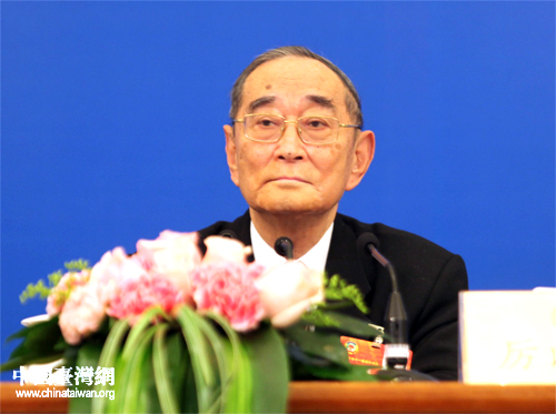 十一屆全國(guó)政協(xié)常委、經(jīng)濟(jì)委員會(huì)副主任,北京大學(xué)光華管理學(xué)院名譽(yù)院長(zhǎng)厲以寧。(中國(guó)臺(tái)灣網(wǎng) 陳佳慧 攝)