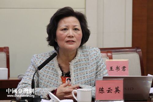 臺(tái)籍代表陳云英在下午的全體會(huì)議上發(fā)言。(中國(guó)臺(tái)灣網(wǎng) 王偉 攝)