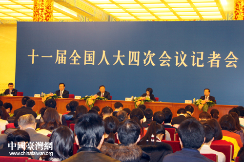 全國(guó)人大常委會(huì)副秘書長(zhǎng)曹衛(wèi)洲主持記者會(huì)。(中國(guó)臺(tái)灣網(wǎng) 王偉 攝)