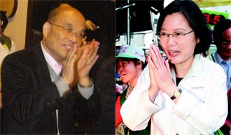 為爭取民進(jìn)黨臺(tái)灣地區(qū)領(lǐng)導(dǎo)人提名,臺(tái)當(dāng)局前“行政院長”蘇貞昌(左圖)、民進(jìn)黨主席蔡英文(右圖)各有盤算。蘇貞昌深入民間養(yǎng)望,靜待對手出招,蔡英文則召集大佬密商,鞏固領(lǐng)導(dǎo)核心。圖片來源:臺(tái)灣《聯(lián)合報(bào)》