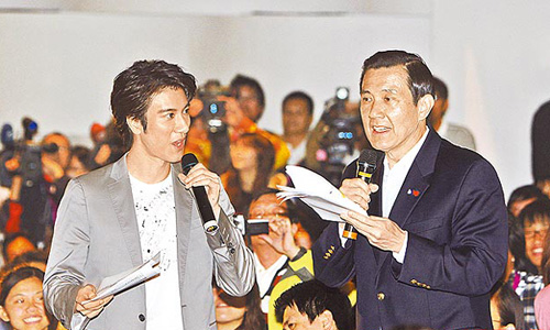 馬英九(右)與偶像歌手王力宏(左)在臺灣清華大學對談夢想造就軟實力。圖片來自網(wǎng)絡