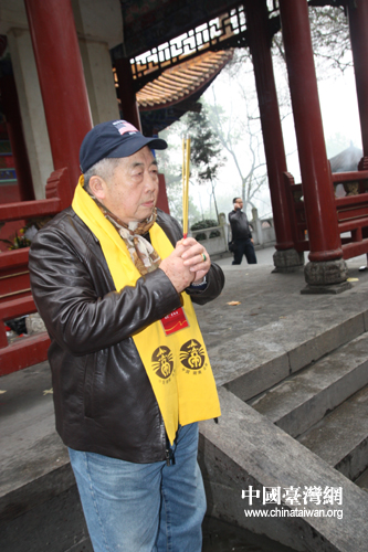 來自臺北,原籍長沙的魯燦云老先生,今年已經(jīng)81歲,在清明祭祀的儀式上幾乎總是落在隊尾,卻堅持從陵園入口一路跋涉至炎帝陵前,盡心竭力虔誠祭拜始祖炎帝神農(nóng)氏。(中國臺灣網(wǎng) 楊麗 攝)