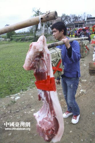迎親隊伍帶著豐厚的聘禮走過田間小路。(中國臺灣網(wǎng) 陳佳慧 攝)