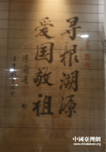 臺(tái)灣高雄市長(zhǎng)陳菊參觀根親文化博物館時(shí)的題詞(中國(guó)臺(tái)灣網(wǎng) 吳捷 攝)