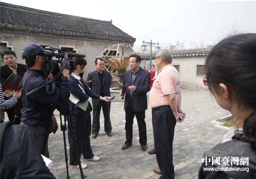 參觀陳氏將軍祠,臺(tái)灣《大愛電視臺(tái)》欄目組特邀祠堂負(fù)責(zé)人與臺(tái)灣政風(fēng)新聞電子報(bào)岳先生分別用固始土話與客家話對(duì)從單字到詞到句依次進(jìn)行了對(duì)比讀說(中國(guó)臺(tái)灣網(wǎng) 吳捷 攝)