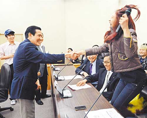一名女大學生與馬英九握到手,興奮地大叫。圖片來自網(wǎng)絡
