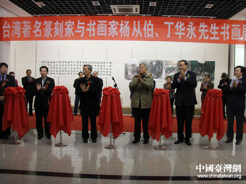 中國臺灣網(wǎng)4月12日煙臺消息 4月12日上午9點半,臺灣著名篆刻家與書畫家楊從伯、丁華永先生書畫展于煙臺市畫院隆重開幕,煙臺市委副秘書長、市臺辦主任孫迎軍,煙臺市文聯(lián)主席孫光輝等參加并剪彩。