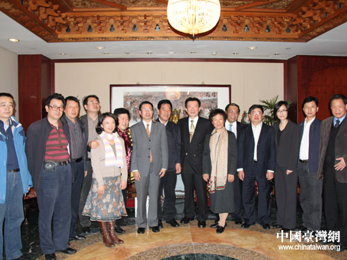 寧夏紡織產(chǎn)業(yè)考察團拜會臺灣紡織業(yè)拓展會并合影留念(左八為寧夏自治區(qū)政協(xié)副主席解孟林,右六為寧夏自治區(qū)黨委副秘書長、臺辦主任張秀燕)。圖片來源:寧夏臺辦