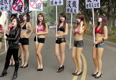 8名辣妹上街舉牌抗議。圖片來源:臺灣“今日新聞網(wǎng)”